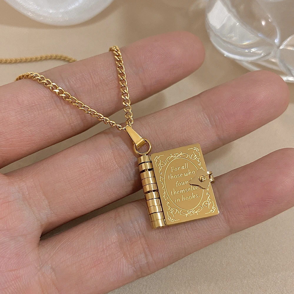 Item:Greatera Stainless Steel Book Pendant Choker Necklaces for Women Men Gold Plated Chain Neckalce Unisex Lovers Jewellery